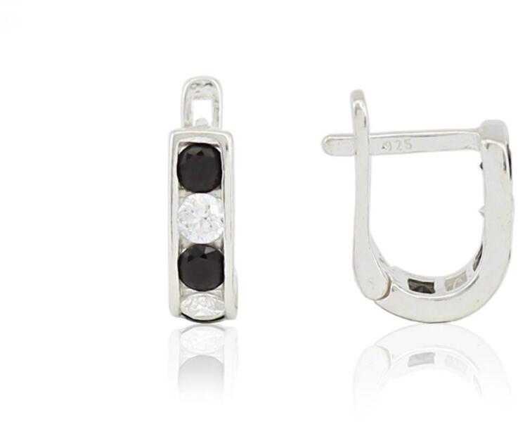 Ez az egyik legcsillogóbb fülbevalónk! A 925-ös tisztaságú ezüstből készült fülbevalóban a fekete és fehér kis cirkónia kövek gyönyörűen szikráznak a rájuk eső fényben. Ezüst fülbevaló franciakapcsos fekete és fehér kövekkelAnyaga: 925 ezüstMéret: belső hasznos terület kb. 9mm x 7mmSzélesség: 4mmSúly: 2 gKő: 6 db fekete és 4 db fehér cirkónia kő / párKöve