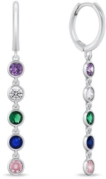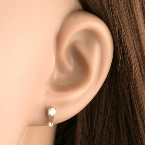 585 arany fülbevaló két átlátszó cirkóniával kerek alakban és egy kicsi fényes piramissal amely közöttük helyezkedik el. A piramis csúcsait részlegesen fedik a cirkóniák. Biztonságos viselését stekker biztosítja. A fülbevaló méretei: 3 x 8 mmA fülbevaló súlya: 0,5 gFémjelzéssel ellátott. Az ár egy párra vonatkozik.