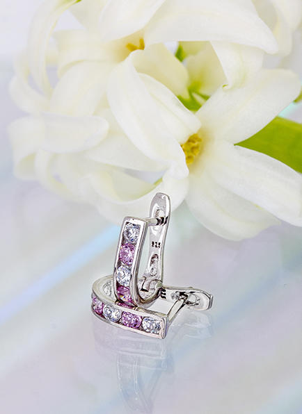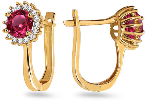 Arany fülbevaló rózsaszín és tiszta cirkóniákkal, modell IZ28521N
