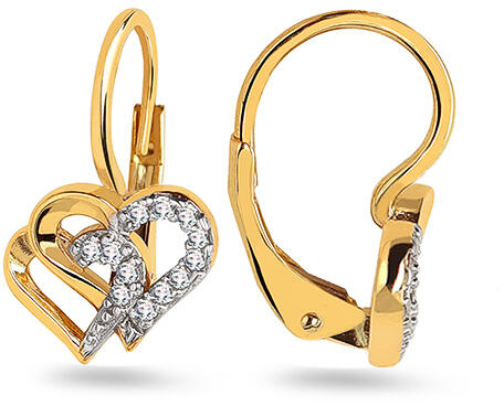 Kéttónusú arany fülbevaló összekapcsolt szívekkel és cirkóniákkal, modell IZ27687