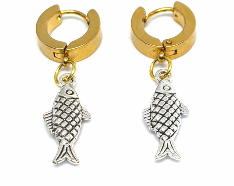 Halacska fülbevaló. Para méterek: A függő mérete 2x0,8 cm. A színe ezüst, anyaga fémötvöze t. Akasztó rozsdamentes acélból készült.