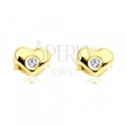 A 14K sárga arany fülbevalót szimmetrikus szív forma alkotja, amelynek felülete fényes és sima. A szív forma közepébe egy kerek átlátszó cirkónia van beültetve. Biztonságos viselését stekker teszi lehetővé. Fülbevaló méretei: 5 x 4 mmFülbevaló súlya: 0,3 gFémjelzéssel ellátott. Az ár egy párra vonatkozik.