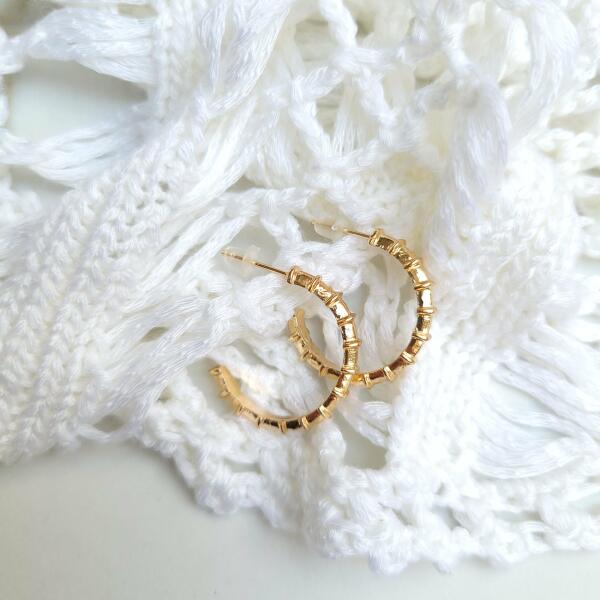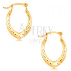 Az 585 arany fülbevaló patkó alakú, amely tekert kötél fényes vonalából áll. A patkó alsó része csúcsban végződik. A fülbevaló francia kapoccsal rendelkezik, ahol a hullámos szár a szembe lévő villába kapcsolódik. Fülbevaló méretei: 11 x 15 mmFülbevaló súlya: 0,5 gFémjelzéssel ellátott. Az ár egy párra vonatkozik.
