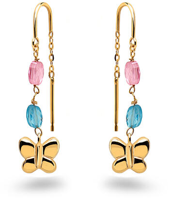 Színes fülbevaló arany pillangóval, modell IZ30641N