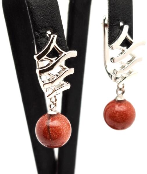 Goldstone vörös fülbevaló (hullám golyó záras Ásvány fülbevaló) Egyedi ásvány ékszer.