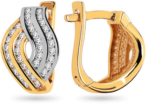 Kéttónusú arany fülbevaló cirkóniákkal, modell IZ27164