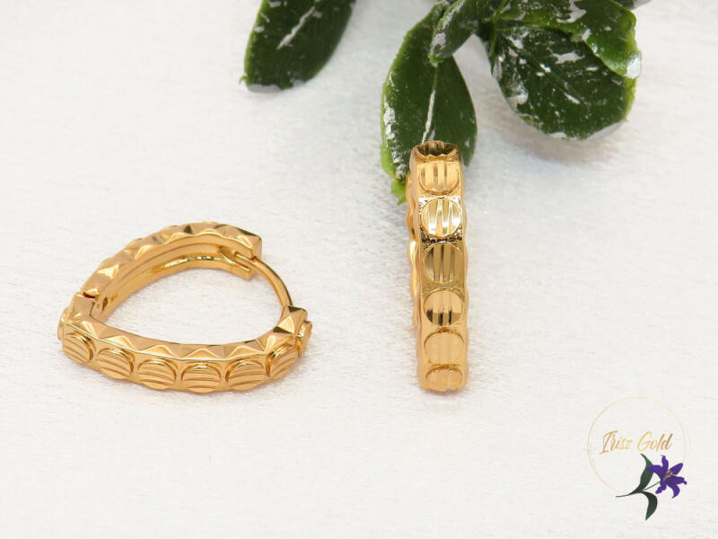 Kétoldalú kombinált fülbevaló gravírozással, 9K, modell IZ24523HR