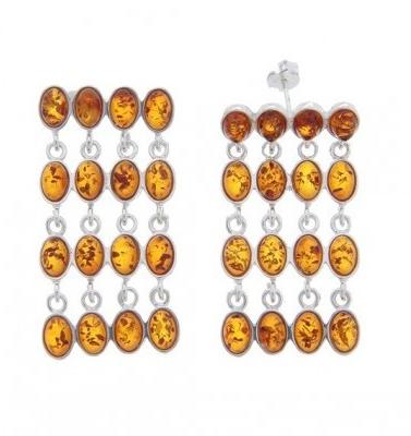 Gyönyörü, 925 tisztaságú ezüst fülbevaló, valódi borostyánnal. Hossz: 4,1 cmSúly (gramm): 11,5 grammSzélesség: 2 cm