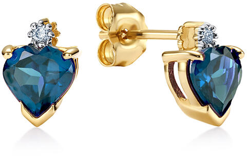 A sárga aranyból készült arany fülbevaló az elegancia és a romantika tökéletes kombinációja. Ez a finom ékszer egy természetes londoni kék topáz szívvel, 1,72 ct súlyú, és egy kiváló minőségű briliánssal (H szín, SI1 tisztaság) készült. Precíz szimmetriájukkal és kivételes polírozásukkal fényűző megjelenést kölcsönöznek a fülbevalóknak. A 14k aranyból (