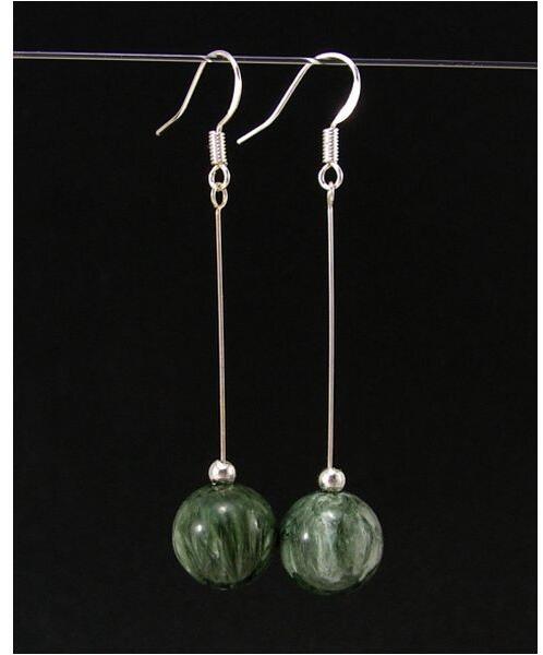 Nagy méretű szerafinit gyöngyből készült hosszított fülbevaló. A szerafinit vélt gyógyhatása