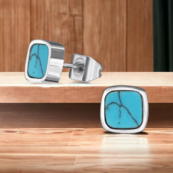 A tükörként csillogó türkiz négyzet - acél fülbevaló egy modern, elegáns és különleges ékszer, mely feldobja és kitűnik az összeállítások között. Ez a fülbevaló tökéletes kiegészítő minden női szett számára, legyen szó akár mindennapi viselésről, vagy elegánsabb alkalmakról. A fülbevaló központi eleme egy gyönyörűen megmunkált acél négyzet, mely türk