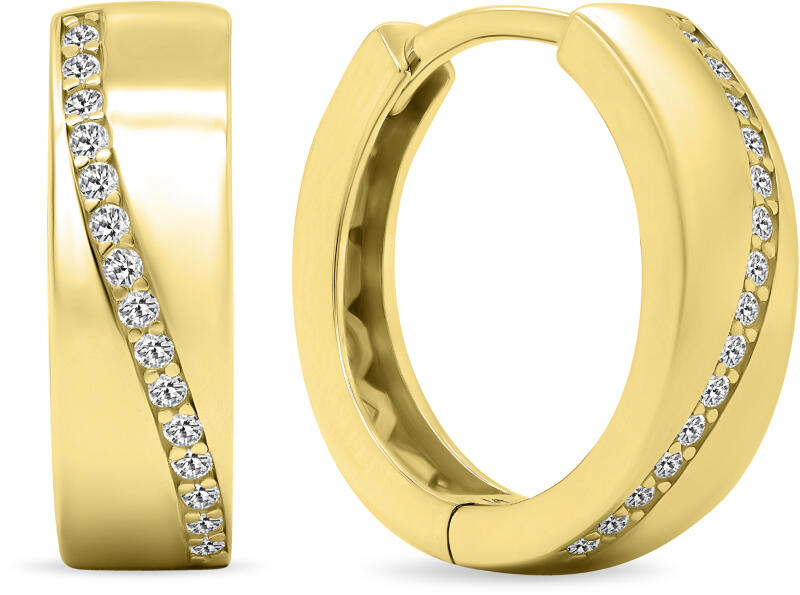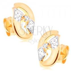 14K arany fülbevaló, szélesebb búzaszem alakban, amelyet két hullámos ív alkot és kivágás található a közepén. Egyes részek fehér aranyból gravírozott pötyökkel vannak díszítveés egy kerek cirkóniával középen. Biztonságos viselését stekker teszi lehetővé. Méret: 7 x 10 mmSúly: 0,5 gFémjelzéssel ellátott. Az ár egy párra vonakozik.