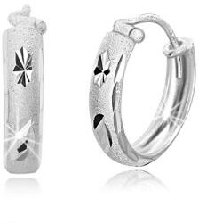 Fülbevaló 925 ezüstből karika alakban, domború érdes homokfúvott felülettel. Díszített bevágások díszítik váltakozó ferde vonalakkal és csillagokkal. A fülbevaló kapcsolása pálcás, melyet a szemben lévő nyílásba kell tolni. A fülbevaló szélessége: 3 mmBelső átmérő: 12 mmKülső átmérő: 14 mmA fülbevaló súlya: 0,84 gFémjelzéssel ellátott. Az ár egy párra