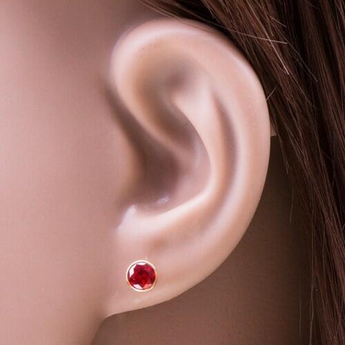 14K sárga arany fülbevaló lekerekített foglalattal, amelyben egy vörös cirkónia van beültetve. A csillogó gránátvörös cirkónia a januári születésűek szimbóluma. Biztonságos viselését stekker teszi lehetővé. Fülbevaló átmérője: 5 mmFülbevaló súlya: 0,6 gFémjelzéssel ellátott. Az ár egy párra vonatkozik.