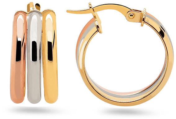 Háromszínű, háromszoros karika fülbevaló 2 cm, szélessége 8,5 mm, modell IZ30677