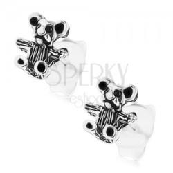 925 ezüst fülbevaló ülő maci alakban, patinált részletekkel. Biztonságos viselését stekker teszi lehetővé. Fülbevaló mérete: 5 x 6 mmSúly: 0,5 gFémjelzéssel ellátott. Az ár egy párra vonatkozik.