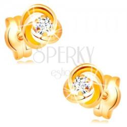 A 14K arany fülbevalót három fényes, lekerekített karika alkotja, amelyek összekapcsolódnak és csomót képeznek. Középen egy csillogó, kerek, átlátszó cirkónia található, hat pálcával rögzítve. Biztonságos viselését stekker teszi lehetővé. Fülbevaló méretei: 6 x 6 mmFülbevaló súlya: 0,6 gFémjelzéssel ellátott. Az ár egy párra vonatkozik.