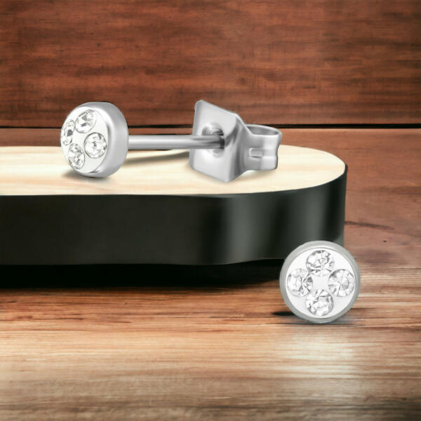 A 3 mm kör kristály – acél stift fülbevaló egy kifinomult és elegáns ékszerdarab, melyet a nők nagy szeretettel viselhetnek mindennapi vagy alkalmi viseletként is. Elkápráztató kialakítása és kifinomult részletei feledhetetlenné teszik viselőjét. Ez a fülbevaló egy 3 mm átmérőjű kerek kristállyal van díszítve, mely szikrázó fényével és ragyogásával vonzza a te