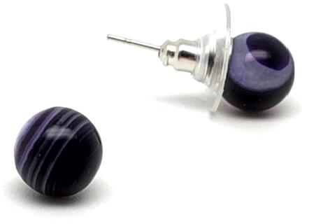 Achát fülbevaló (golyó szinezett sáv lila Ásvány fülbevaló) Amit az achátról érdemes tudnod: Az achát minden színben fellelhető, többnyire szürke, kékesszürke, zöldesszürke, szürkésfehér, barna csíkozással, áttetsző. Lelki gyógyhatás: Az achát lelki gyógyhatásai közül a legkiemelkedőbb a segítségnyújtása félelmeink leküzdéséhez. Ez a mutatós kő remény
