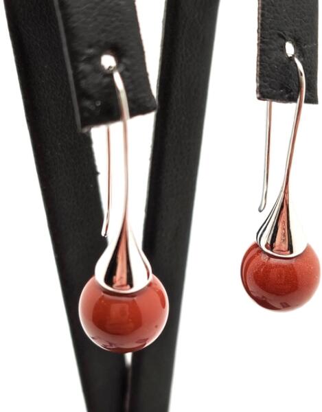 Goldstone fülbevaló (lógó golyó kürt vörös Ásvány fülbevaló) Egyedi ásvány ékszer.