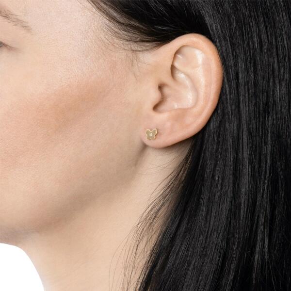 Pillangó méretei: 7 x 6 mmA gyémántok átmérője: 1,5 mmA gyémántok összsúlya karátban: 0,030 ctTisztaság: SISzín: HA fülbevaló súlya: 0,51 gFémjel – Van. Az ár egy párra vonatkozik.