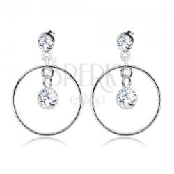 925 ezüst fülbevaló kerek kristály beszúróból, mely alatt körvonal függ. A körvonal felső részén csillogó fehér színű golyó függ átlátszó csillogó Preciosa kristály díszítéssel. A fülbevaló kapcsolása stekkeres. Fülbevaló méretei: 15 x 21 mmFülbevaló súlya: 0,93 gFémjelzéssel ellátott. Az ár egy párra vonatkozik.