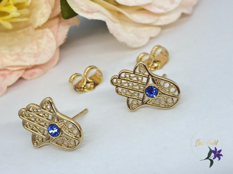 Fatima keze beszúrós fülbevaló kék cirkónia kővel Szin : 18Kr Méret:16x10 mm A forgalmazott divatékszerek alapanyaga nikkel és ólommentes ezért többnyire nem okoznak allergiás tüneteket, nyugodtan hordhatják fémérzékeny emberek is. Általában nem színezik a bőrt és más divatékszerekhez képest nagyságrendekkel jobb kopásállósággal rendelkeznek. A fehér (ezüst) szín