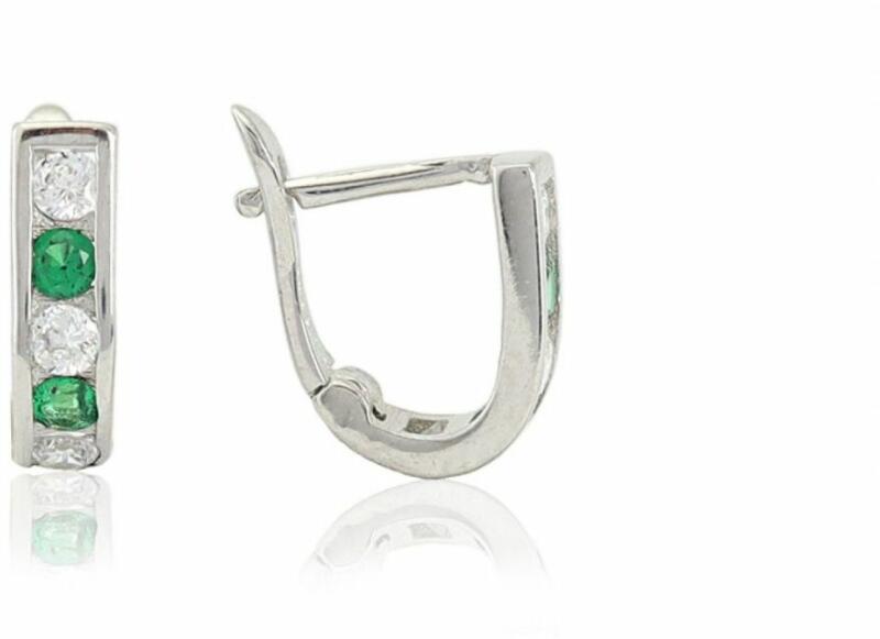Ez a kis zöld és fehér kövekkel kirakott franciakapcsos ezüst fülbevaló igazán imádnivaló! Bátran ajánljuk hát a legaranyosabb, legmosolygósabb, legcukibb kislányoknak! :) Ezüst gyermek fülbevaló széles franciakapcsos zöld és fehér kövekkel ródiumbevonatosZár: franciakapcsosAnyaga: 925 ezüstBevonat: ródiumMéret: belső hasznos terület kb. 9mm x 7mmSzélessége: 4.3mmS