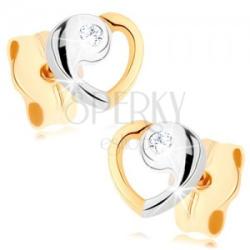 375 arany fülbevaló fényes kontúr egyenetlen szív alakban. A körvonal fele arany kivitelezésű. A másik fele pedig ezüst árnyalatú, ródiummal kezelt és egy szélesebb könnycseppel végződik, amelybe egy átlátszó cirkónia van ültetve. A fülbevaló beudgós a hátsó oldala pedig üreges. A fülbevaló méretei: 4,5 x 5 mmA fülbevaló súlya: 0,3 gFémjelzéssel ellátott. Az
