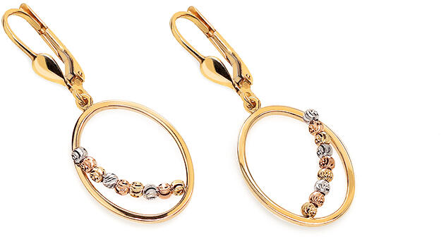 Kombinált arany fülbevaló gravírozással és golyócskákkal, modell IZ24663