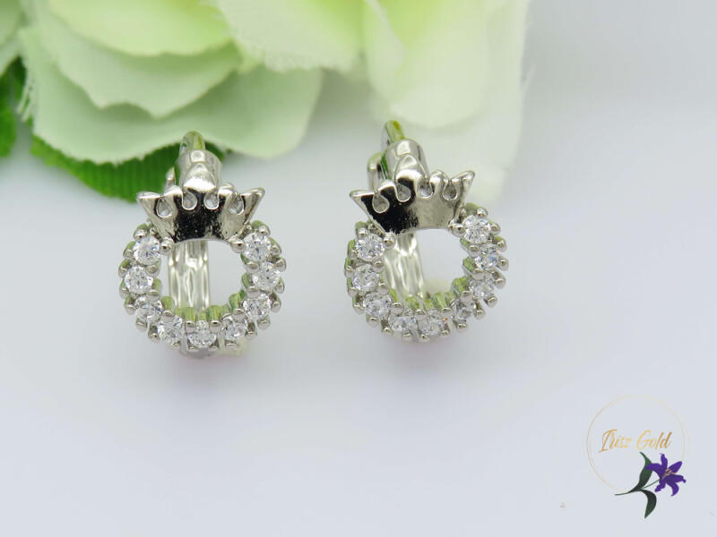 Antiallergén kis koronás gyermek fülbevaló apró fehér cirkóna kövekkel Szin: rodium Méret: 8x6mm Zár: karika belső átmérő 8mm A forgalmazott divatékszerek alapanyaga nikkel és ólommentes ezért többnyire nem okoznak allergiás tüneteket, nyugodtan hordhatják fémérzékeny emberek is. Általában nem színezik a bőrt és más divatékszerekhez képest nagyságrendekkel jobb ko
