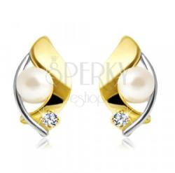 A 14K kombinált arany fülbevalót két ellentétes irányba meghajlított fehér és sárga arany ív alkotja, amelyeknek végei összekapcsolódnak egy aszimmetrikus szem körvonalát képezve, középen fehér gyönggyel. Az alsó részben egy csillogó kerek, átlátszó cirkónia van elhelyezve. Biztonságos viselését stekker teszi lehetővé. Fülbevaló méretei: 6 x 11 mmFülbevaló sú