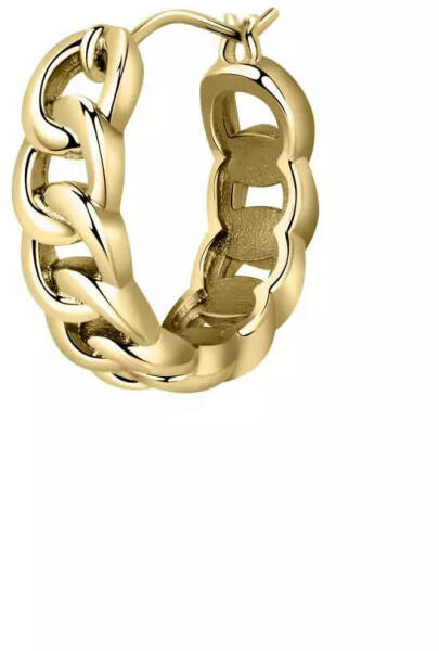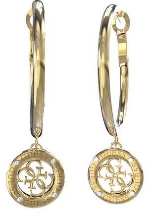 Női fülbevaló Guess JUBE02285JWYGBKT sebészeti acélból. A Guess fülbevalók kör alakú modellje jellegzetes díszítéssel gazdagodott, amely tökéletesen kiemeli egyediségét. A 13 mm átmérőjű dísz a 4G logóból áll, ahol a külső kerületben csillogó kristályok egészítik ki, a Guess márkanévvel együtt. Az arany színösszeállítás könnyen illeszthető a legkülönböz