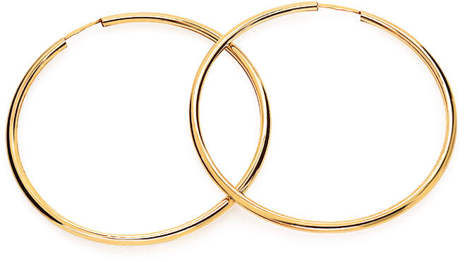 Kényelmes, karika alakú fülbevaló sárga 14 karátos aranyból. A fülbevaló sima, fényes felületű.