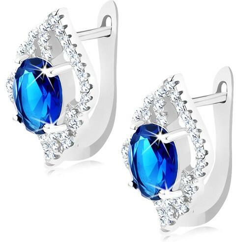 Fülbevaló 925 ezüstből levélkörvonal alakban. A levél belseje hullámos csillogó vonalakkal és ovális sötétkék csiszolt felszínű cirkóniával díszített. A fülbevaló felszíne ródiummal van ellátva és orosz patenttel záródik. Fülbevaló mérete: 11 x 17 mmFülbevaló súlya: 4,2 gFémjelzéssel ellátott. Az ár egy párra vonatkozik. A ródiummal kezelt felület az éksze