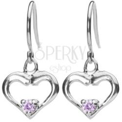 Ezüst lógó fülbevaló szív formájú kontúrvonalban. A felső részen teltebb alak. A középen, az alsó rész belsejében egy kis rózsaszín cirkónia található, amely csiszolt felületű. A szív klasszikus kampóra van erősítve. A szív mérete: 11 x 11 mmA fülbevaló súlya: 1,2 gFémjelzéssel ellátott. Az ár egy párra vonatkozik.