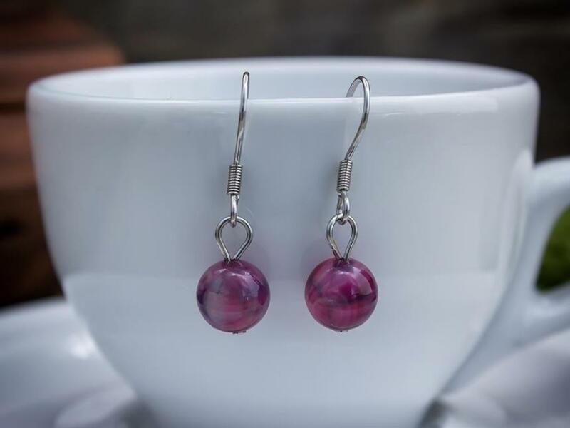 Fényes lila achát, 8 mm-es ásvány gyöngyökből készült lógós fülbevaló. Letisztult ékszer, melyet önmagában is viselhetsz, de választhatsz a hozzá passzoló ásvány karkötők közül is. Amit az achátról érdemes tudnod: Az achát minden színben fellelhető, többnyire szürke, kékesszürke, zöldesszürke, szürkésfehér, barna csíkozással, áttetsző. Lelki gyógyhatás