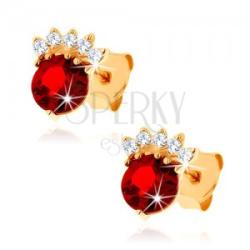 Fülbevaló 9K sárga aranyból átlátszó, cirkóniás koronával, amely alatt egy csiszolt, kerek, gránát helyezkedik el piros árnyalatban. A fülbevaló biztonságos viselését stekker biztosítja. A fülbevaló méretei: 5 x 6 mmA fülbevaló súlya: 0,5 gFémjelzéssel ellátott. Az ár egy párra vonatkozik.
