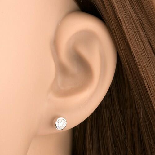 Fülbevaló 14K fehér aranyból csillogó átlátszó csiszolt cirkóniával kerek alakban, mely fényes sima foglalatba van helyezve. A fülbevaló kapcsolása stekkeres. Átmérő: 5 mmSúly: 0,69 gFémjelzéssel ellátott. Az ár egy párra vonatkozik.