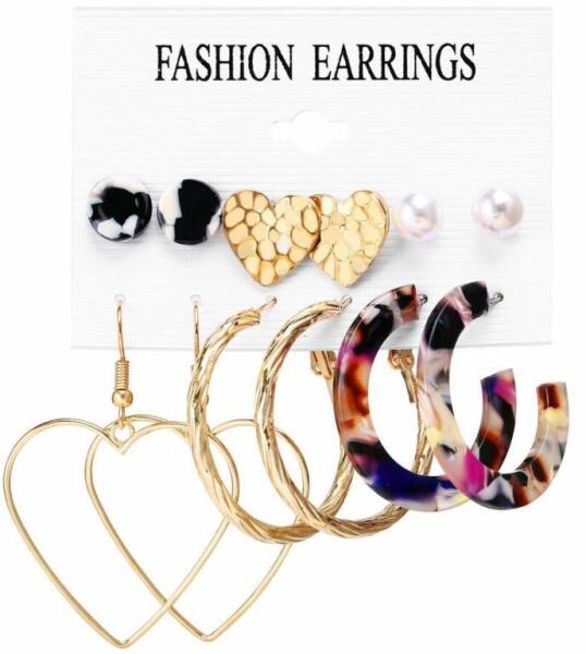 Beszúrós fülbevaló szett, szív dísszel. Anyaga fémötvözet és akril, 6 pár fülbevaló. Egy jól megválasztott ékszer öltöztet, feldobja a napodat, valahányszor ránézel, jobb kedvre derülsz. A színekkel és anyagokkal manapság könnyű variálni a különböző stílusokat, nem kell ragaszkodni a hagyományos szettekhez, nem feltétlenül kell a fülbevalót a karkötő vagy ny