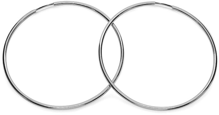 Arany, kerek, 5,5 cm átmérőjű fülbevaló 14 karátos fehéraranyból készül. A fülbevaló sima, fényes felületű.