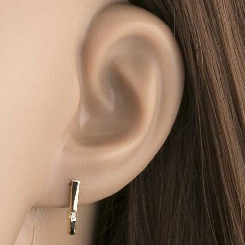 A sárga 14K arany fülbevalót egy függőleges sáv alkotja, amelyet három csillogó, átlátszó, kerek alakú cirkónia képez. A cirkóniás sávon keresztül egy keskeny és fényes, arany hullám húzódik. Biztonságos viselését stekker teszi lehetővé. Fülbevaló méretei: 4 x 6 mmFülbevaló súlya: 0,5 gFémjelzéssel ellátott. Az ár egy párra vonatkozik.