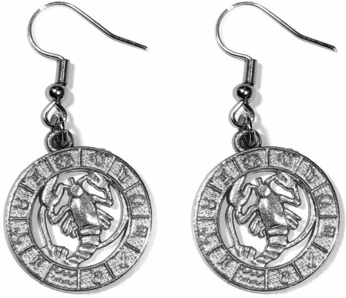 Rák-Horoszkóp fülbevaló, ezüst színű Paraméterek: A függő mérete 2,4 cm, anyaga fémötvözet. Akasztó rozsdamentes acél.