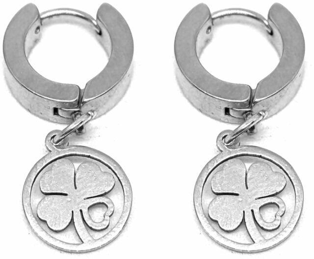 Nemesacél Négylevelű lóhere szerencse fülbevaló Paraméterek: Mérete kb. 2,5 cm, lóhere kb. 1,2 cm. Rozsdamentes acél. A függő anyaga nemesacél, színe ezüst. Akasztó rozsdamentes acélból készült.