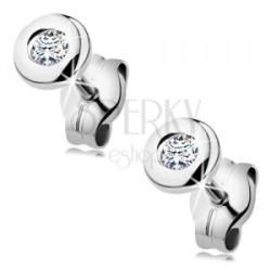 Fülbevaló 14K fehér aranyból kerek alakú, csillogó átlátszó csiszolt cirkónáival. A cirkónia fényes sima lekerekített felszínű foglalatba van beültetve. A fülbevaló kapcsolása stekkeres. A fülbevaló átmérője: 4 mmSúly: 0,35 gFémjelzéssel ellátott. Az ár egy párra vonatkozik.