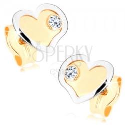 Fülbevaló 9K aranyból matt egyenletes szívvel lapos arany színű felülettel, amely fényes körvonallal van keretezve. A keret ezüst színű és ródiummal kezelt. A szívecske kerek, átlátszó cirkóniával van díszítve. A fülbevaló biztonságos viselését stekker biztosítja. A fülbevaló méretei: 6 x 5 mmA fülbevaló súlya: 0,3 gFémjelzéssel ellátott. Az ár egy párra vona