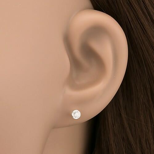 A kis bedugós fülbevaló sterling ezüstből készült. A kerek tiszta cirkónia kör alakú kehelybe van ágyazva. A biztonságos viselést a stekker biztosítja. Átmérő: 3 mmA fülbevaló súlya: 0,5 gAz ár egy párra vonatkozik. Fémjelzéssel ellátott.