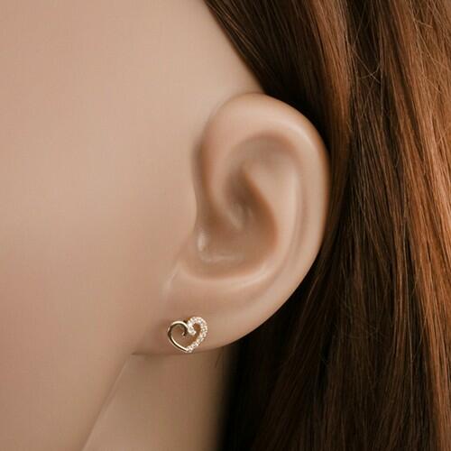 Fülbevaló 14K sárga aranyból szabályos szívköronallal, miközben a felső részén a szárai enyhén csavarodnak befelé. A szív egyik oldala átlátszó cirkóniás vonallal díszített a másik pedig fényes és sima. Biztonságos viselését stekker biztosítja. A fülbevaló méretei: 8 x 7 mm A fülbevaló súlya: 0,4 gFémjelzéssel ellátott. Az ár egy párra vonatkozik.