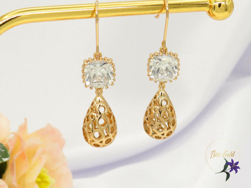 Antiallergén gyönyörű beakasztós fülbevaló felül nagy cirkóna kővel alsórészén csepp alakú fülbevaló Szin : 18K Méret: 4,5 cm 1 cm Kő méret: 1x1cm Beakasztós A forgalmazott divatékszerek alapanyaga nikkel és ólommentes ezért többnyire nem okoznak allergiás tüneteket, nyugodtan hordhatják fémérzékeny emberek is. Általában nem színezik a bőrt és más divatékszere