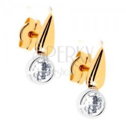 Ródiumozott 375 arany fülbevaló vékony csepp alakú sárga arany beszúróból, mely alatt csillogó átlátszó cirkónia van a fehér arany foglalatba helyezve. A hátsó oldala üreges. Biztonságos viselését stekker biztosítja. Méretek: 4 x 11 mmA fülbevaló súlya: 0,5 gFémjelzéssel ellátva. Az ár egy párra vonatkozik.
